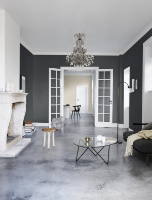 W nowej karcie, Flügger At Home, zestawiono 22 odcienie szarości i bieli, które idealnie nadają się do eleganckich i szykownych wnętrz. Niektóre z nich, ciepłe, tworzą przytulny nastrój, inne – takie jak srebro czy cementowy szary – stwarzają wrażenie surowości i świetnie nadają się do nowoczesnych, sterylnych wnętrz. Do eleganckiego salonu doskonale nadają się za to ciemne farby o wykończeniu półmatowym, ale wymagają one bardzo dokładnego przygotowania podłoża, bo widać na nich każdą nierówność.