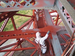 Zastosowany wówczas po raz pierwszy podkład w 2/3 składał się z ołowiu. Dziś oczywiście skład farby jest zupełnie inny, zamiast ołowiu jego podstawowym składnikiem jest cynk. Renowacja mostu odbywa się co 10-20 lat i z reguły bierze w niej udział zespół składający się z 28 malarzy, pięciu pomocników oraz szefa. Ich zadaniem jest przygotowanie wymagających odświeżenia, skorodowanych powierzchni oraz pokrycie ich na nowo farbą. Pomarańczową, oczywiście.