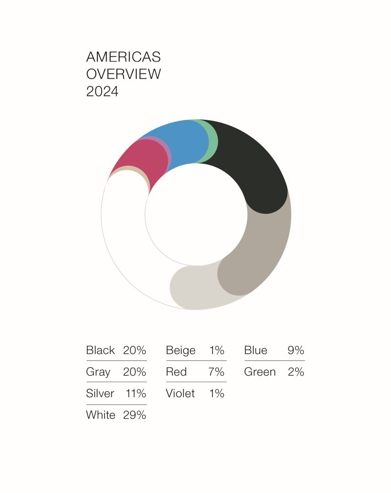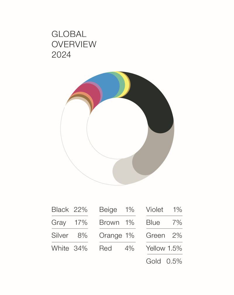 Inne barwy achromatyczne rzeczywiście straciły w tym regionie na zainteresowaniu. W stosunku do roku 2023 czarny odnotował spadek o 2%, zaś udział bieli zmalał aż o 5%.