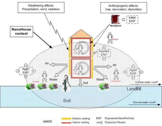 Wspierany przez Unię Europejską i EMPA projekt NanoHouse rozpoczął się w 2010 roku. Miał ustalić, czy nanocząstki uwalniane do atmosfery z materiałów budowlanych, w tym farb elewacyjnych i wewnętrznych, są szkodliwe dla zdrowia. Obiektem badań stały się dwa rodzaje nanocząstek – nanosrebro i dwutlenek tytanu.
