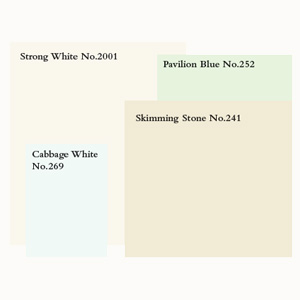 Tak pogodny i błogi nastrój, korespondujący z bezchmurnym niebem i falującą zatoką za oknem, uzyskać można wykorzystując pastelowe odcienie Strong White lub Skimming Stone oraz Cabbage White i Pavilion Blue z lekką domieszką błękitu. Jest to prosty, łagodny zestaw kolorystyczny, który można łatwo pogodzić z innymi elementami wystroju.