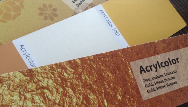 Acrylcolor to gama na którą składają się 3 farby metaliczne do ścian: Acrylcolor 5001 (złota farba), Acrylcolor 5002 (srebrna farba), Acrylcolor 5002 (brązowa farba).