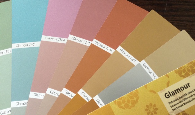 Wzornik kolorów farb Jupol zawiera również gamę o nazwie Glamour. To 24 metaliczne odcienie metalicznych emalii do ścian. Oznaczone są nazwą glamour i 4 cyfrowymi kolejnymi kodami zaczynającymi się od cyfry 7.