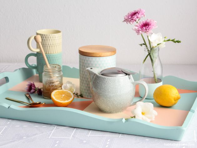 Drewniana taca to świetny sposób, by rozpieścić kogoś bliskiego śniadaniem do łóżka. A jeśli do tego własnoręcznie ją pomalujemy w pastelowy wzór, będzie cieszyć również oko!